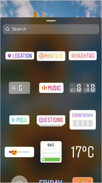 Once that’s done, tap the stickers button at the top of the screen and choose the music sticker.