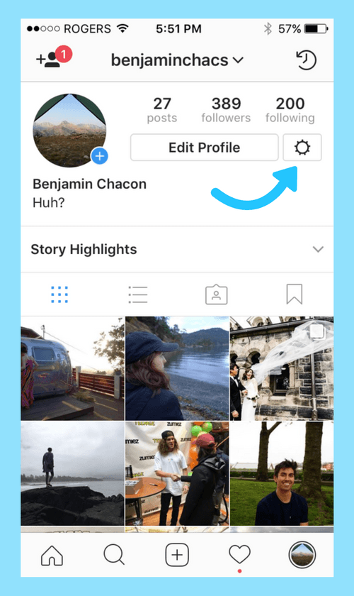 - go to your account page from someone else's Instagram profile;