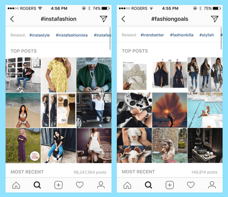 If you’re an account with 10,000 or less followers, you’re much more likely to get into the top posts for a smaller, highly-targeted hashtag like #fashiongoals than you are for a massive hashtag like #instafashion.