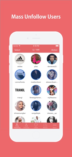 If you are using our apps or not, you must make sure that you do not unfollow more than 200 accounts per day (new accounts under 3 months) and 700 accounts per day (accounts over 1 year). To make sure your account is not shadowbanned, keep your unfollow limit to less than 60 per hour with a gap of 25-30 seconds. Followers+ Track for IG helps you to easily unfollow on Instagram, which is why you might be motivated to unfollow quickly and easily.