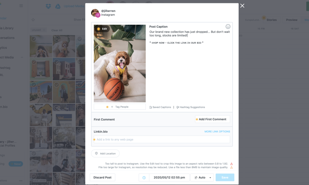 - Automatically hide your post’s hashtags in the first comment to keep your caption clean & clutter-free.