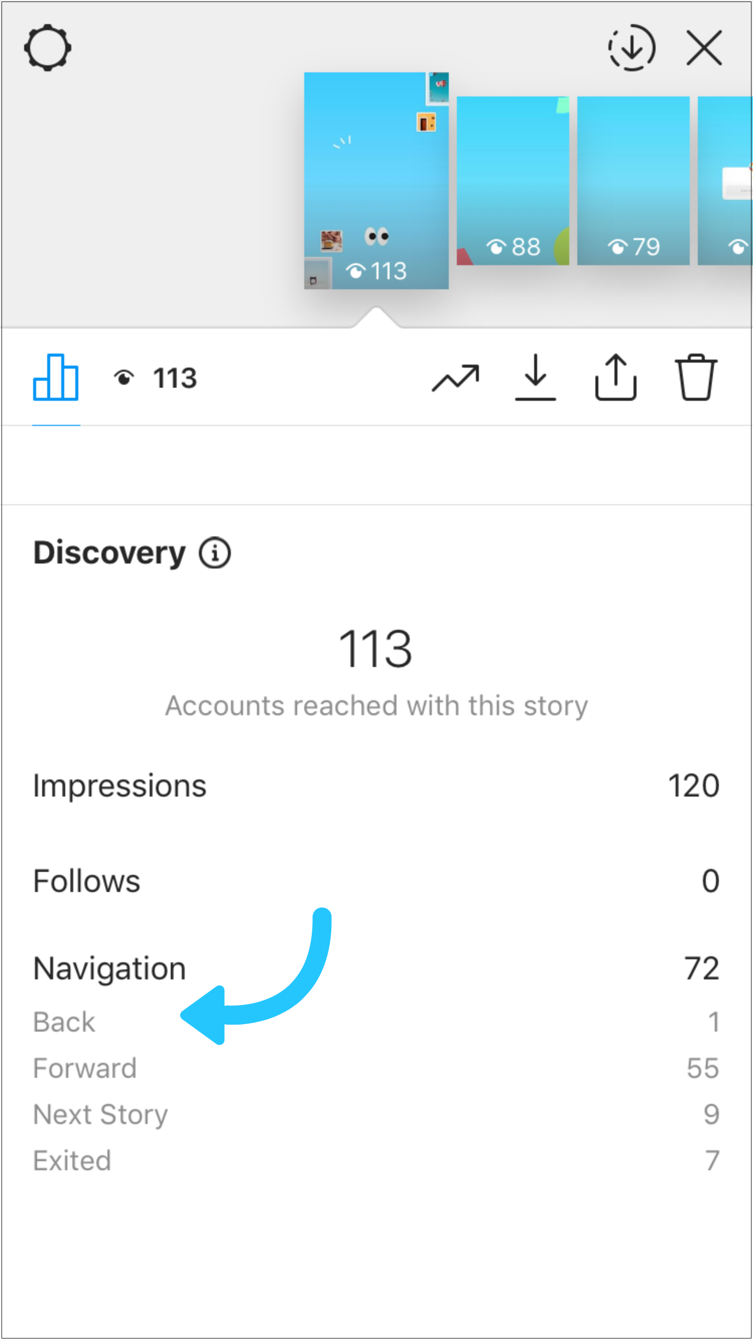 - You’ll immediately access insights for that Story, including replies, exits, link clicks, forwards, and more.