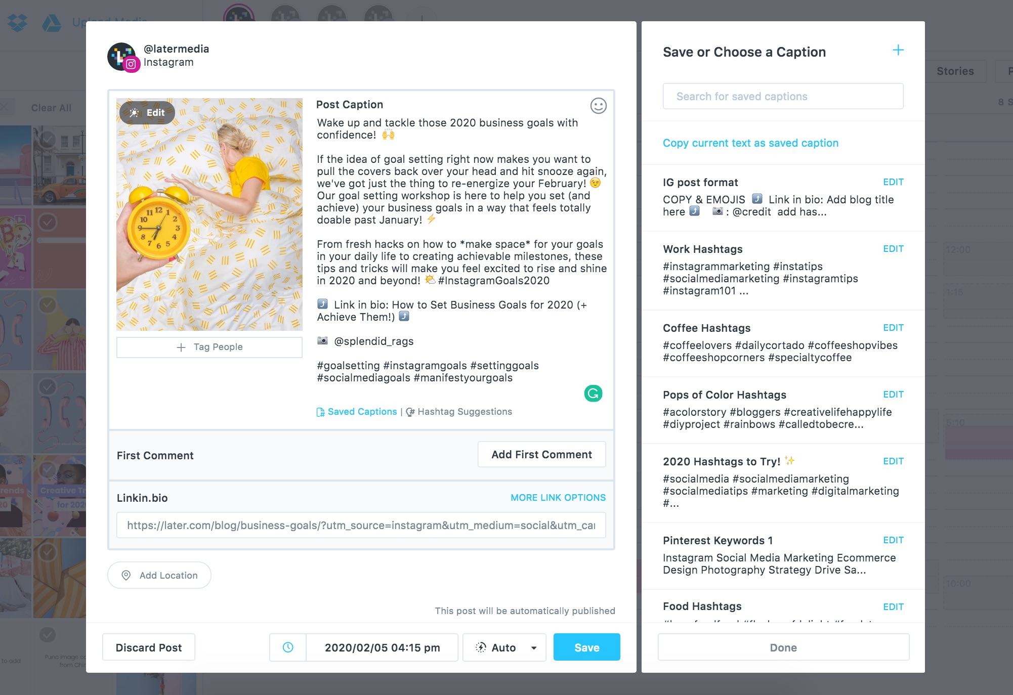 You can then pick and choose a few hashtags to use each time, rather than having to remember the hashtags or search for new ones for each post. This also gives you the time to check out what kind of content is already being posted for these hashtags, so you don’t make one of the mistakes mentioned above.