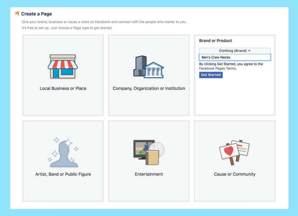 The next step is to link to the Facebook page. It is advisable to set up a business page for the company on Facebook in advance and link it to the account, but this is not necessary. You can skip this step by clicking Don't Link to Facebook. If there is no page, but you want to integrate with Facebook, click "Create a new Facebook Page".