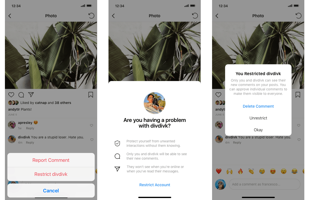 - You can then choose to block or restrict the Instagram user if you have not already done so. Instagram will also allow you to choose to block any account that person makes in the future.