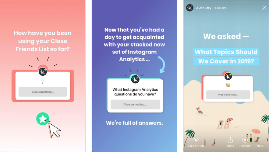 We already showed that polls are a good strategy to increase engagement on your Instagram story. However, stickers allow your users to interact with you by placing their personal messages on your stories.