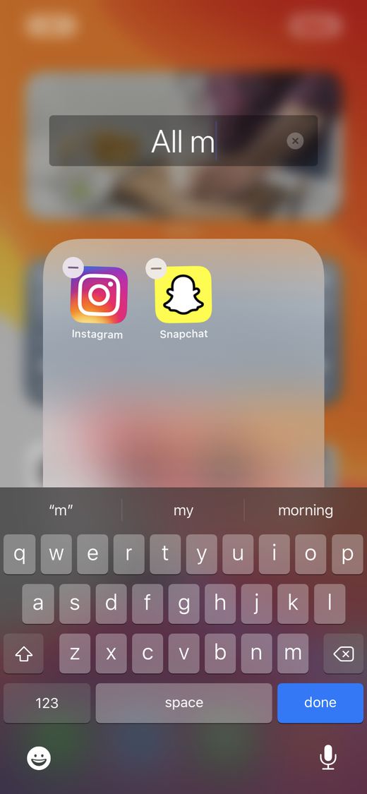 - First, create a folder by tapping and holding down on an app and dragging it on top of another app. Once you see that the folder has been created, you can release the app. You can add as many apps to the folder as you want. The folder will be automatically named by your phone, but you can change this by clicking on the text above the folder after you create it.