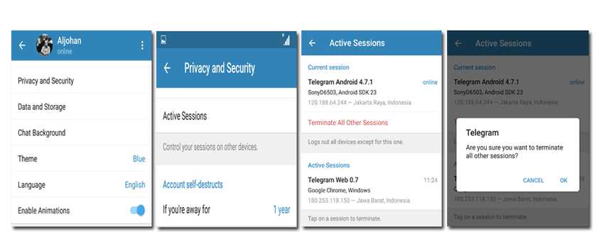 Viewing active sessions in Telegram and then disabling each or some of them is a very useful feature, especially in cases where for some reason you logged into your account from someone else's device.