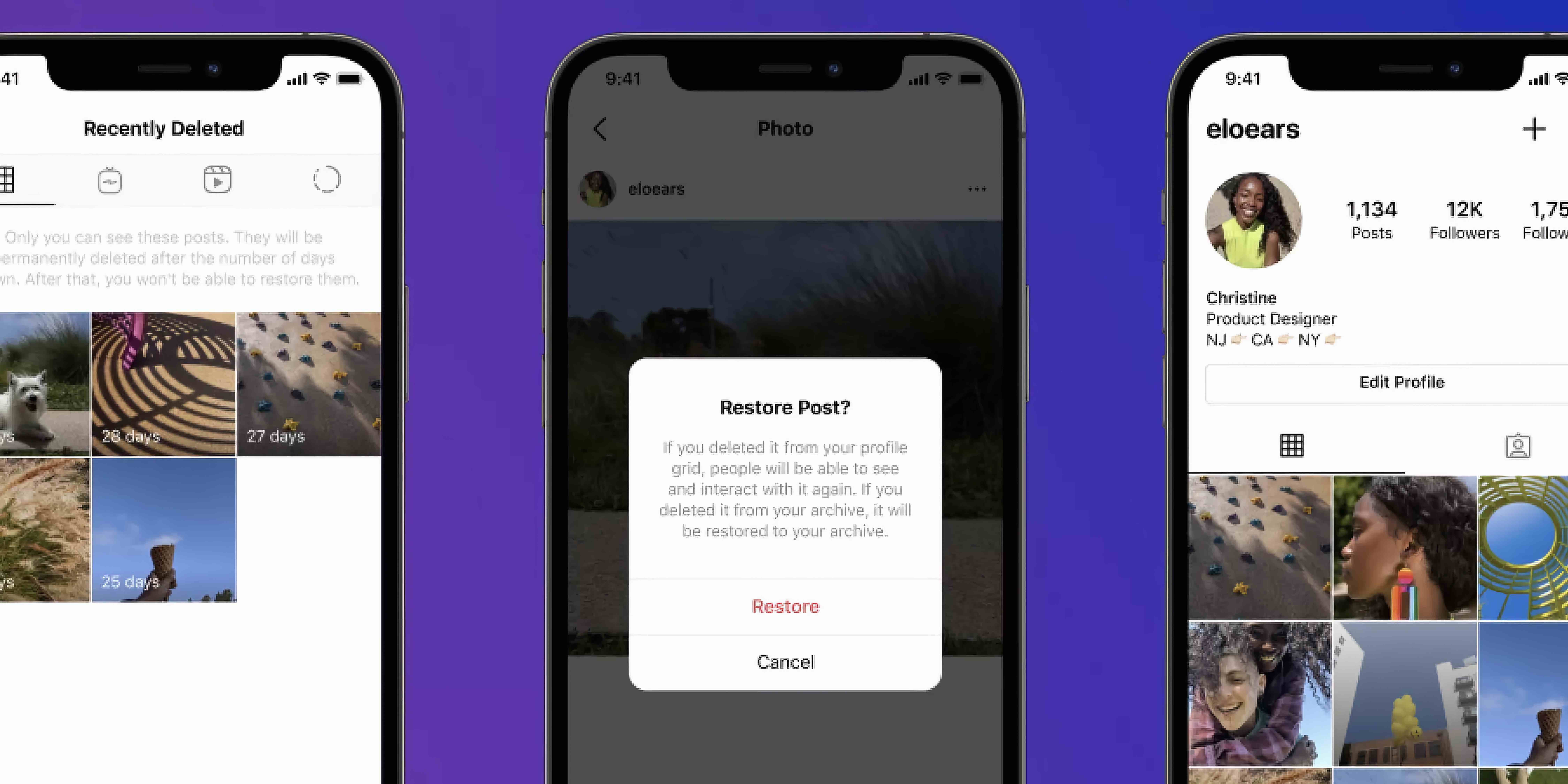 This will bring the photo back to your profile. You can restore pictures, reels, and more this way. On the other hand, if you need to take something down from your main profile without completely deleting it, take advantage of the Instagram archive feature.