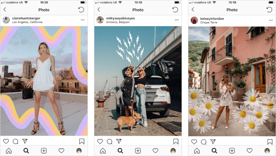 Instagram also lets us pick different static and dynamic filters for our shots. We can apply a different filter to each photo OR throw a single filter over the whole Story.