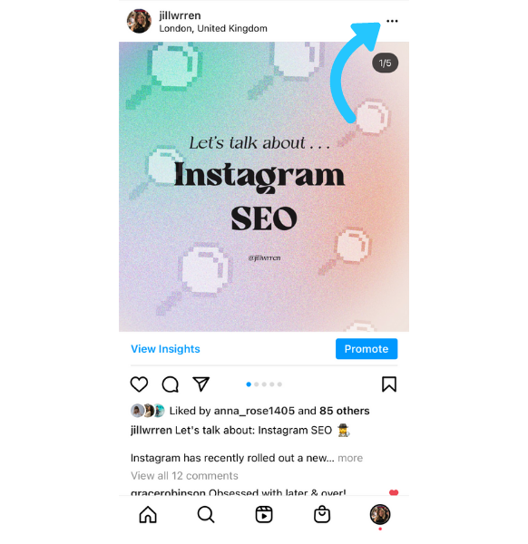 Du kannst die Einstellungen für deinen Beitrag nach Bedarf aktualisieren. Du kannst beispielsweise entscheiden, wo es geteilt wird, Kommentarfunktionen anpassen und vieles mehr. Ebenso kannst du die Beschriftung oder den Ort ändern und weitere Tags hinzufügen.