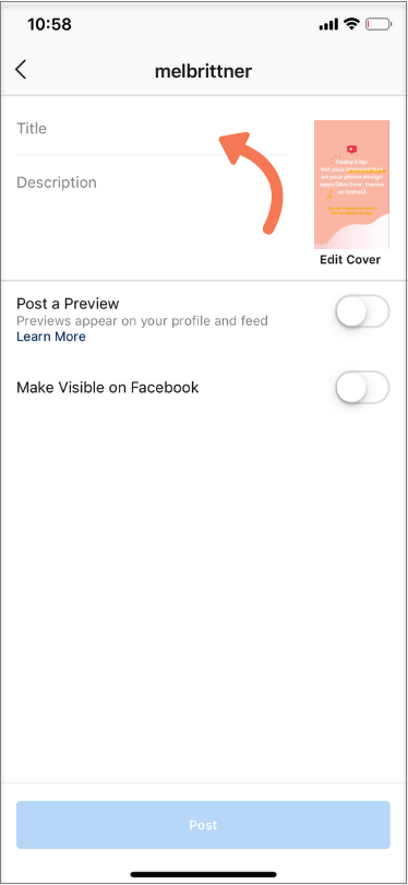 6. To post a preview of your IGTV video on your feed and profile, make sure the "Post a Preview" box is checked.