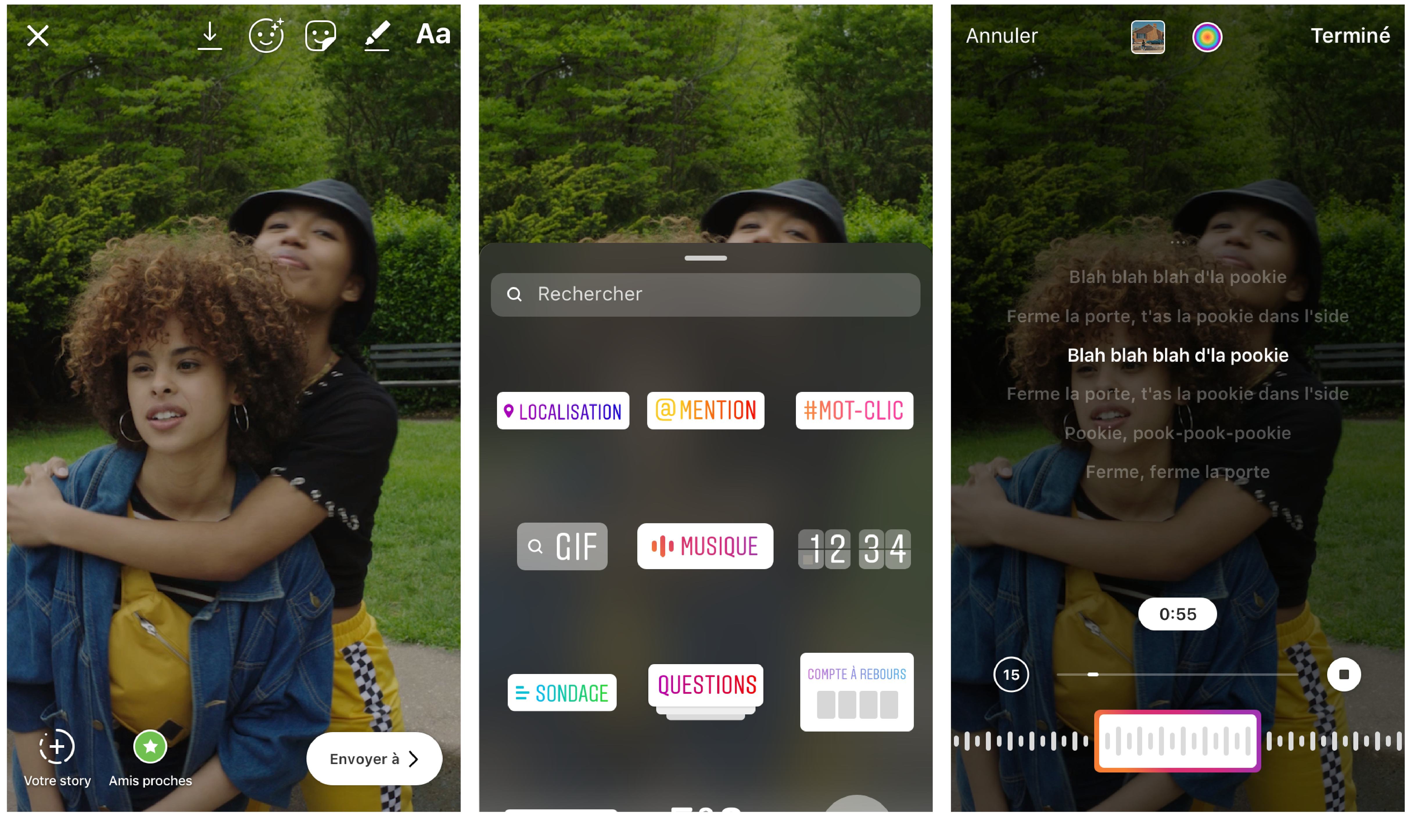 Looking at the Instagram Stories your friends made, you noticed that some of them had song lyrics overlaid, which also served as the background music for the content.