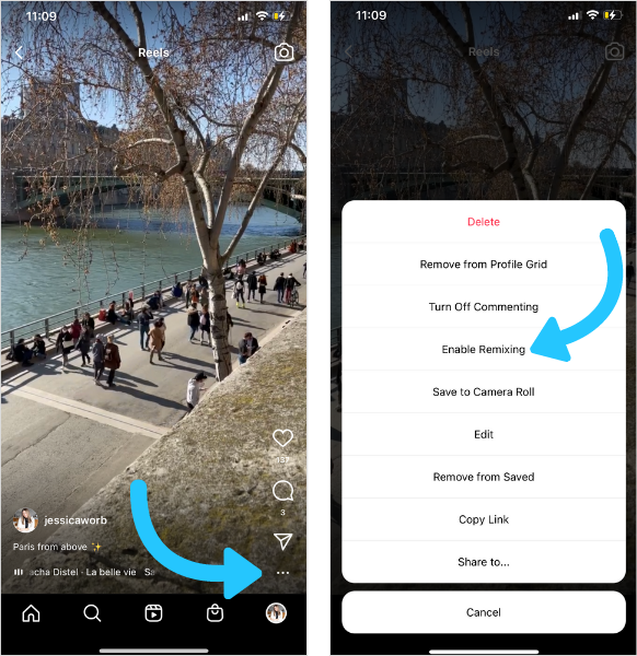 Additionally, posts will have the time and date they were published displayed at the top, while reels will not.