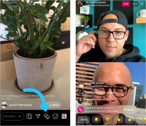 The difference between the joint broadcast on Instagram is that it is conducted by two users, each from their own account.