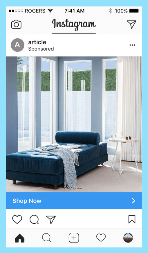 Instagram Shopping ads take users directly to a product description page within the Instagram app. They can then purchase through your mobile website.